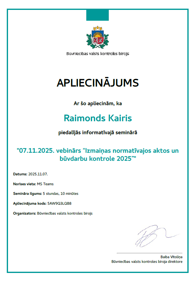 Būvkomersanta reģistrācijas Nr. 19788